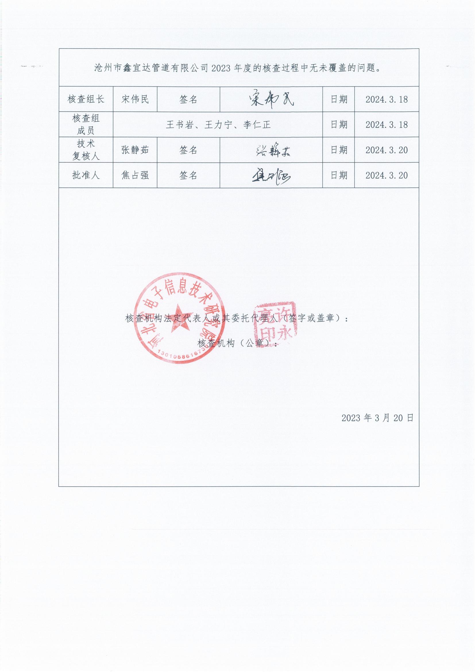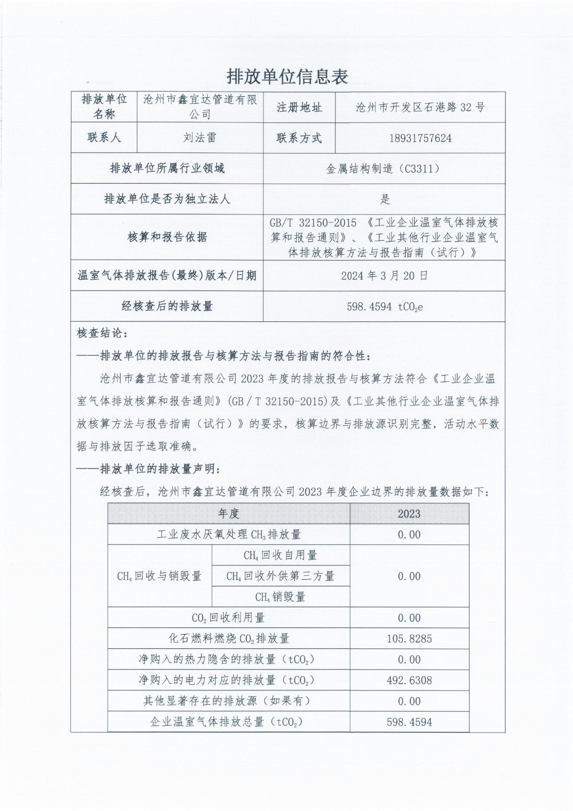 Greenhouse Gas Emission Verification Report of Synda for the Year 2023